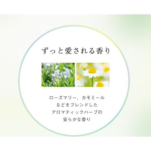 ローズマリー、カモミールなどをブレンドしたアロマティックハーブの安らかな香り。