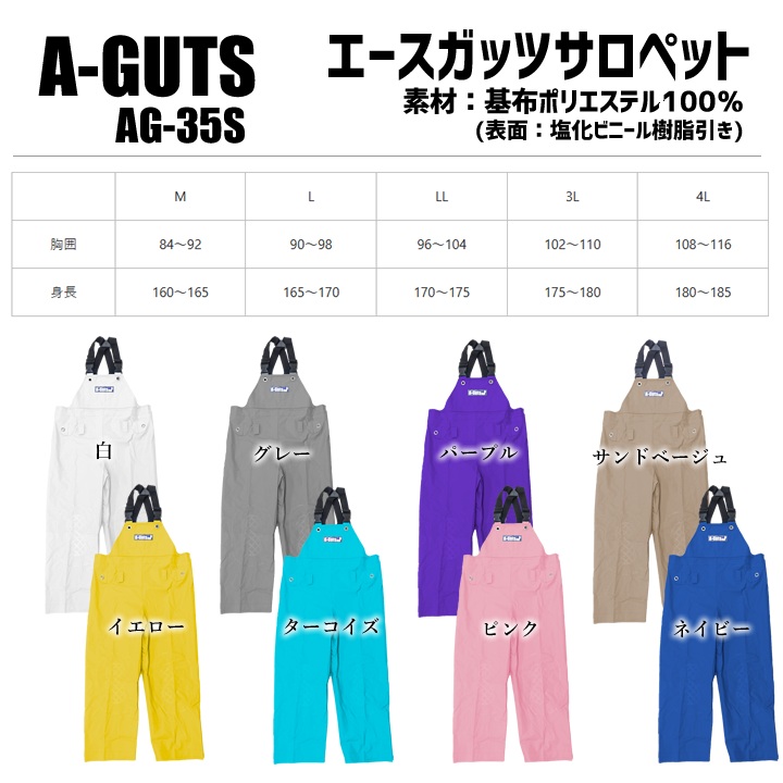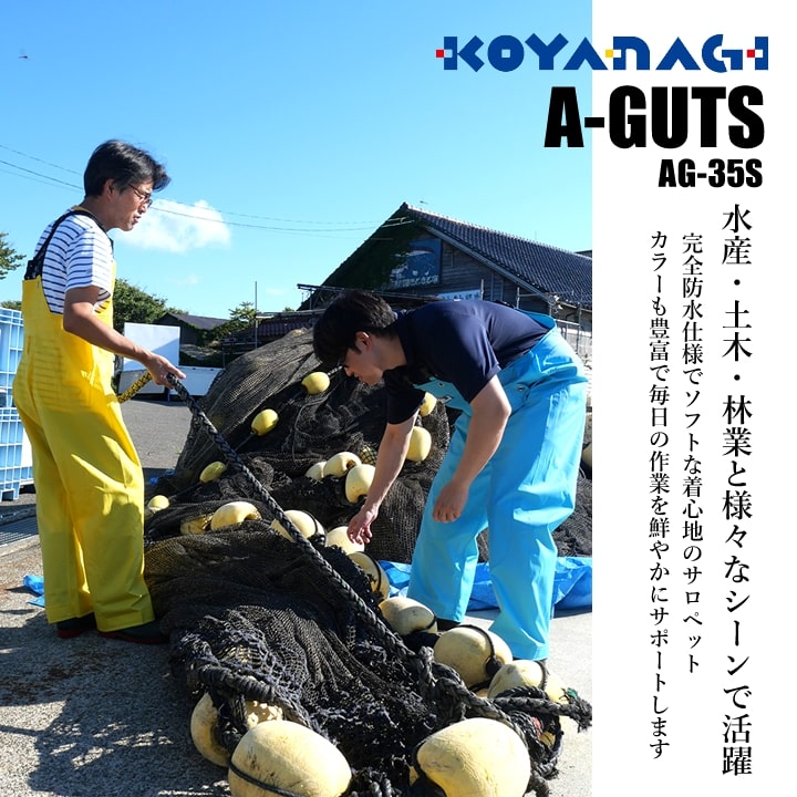 レインウェア 水産用合羽 合羽 完全防水 ズボン エースガッツサロペット レインスーツ オーバーオール ズボン コヤナギ AG-35S 作業用 アウトドア 漁業 釣り