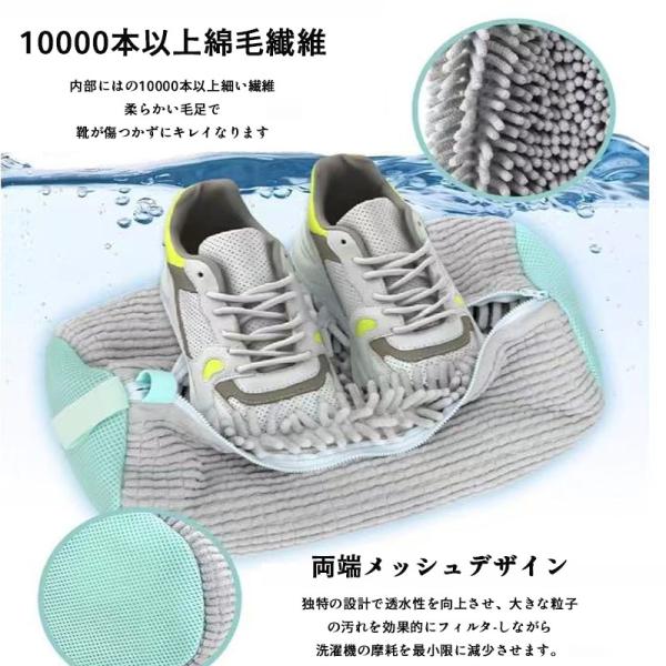 ▼洗濯ネットには10,000本以上のシュニールマイクロファイバーが含まれており、洗浄工程で効率的な洗浄を実現します。これらの微細な毛が靴の表面を優しく洗い、靴を傷つけることなく、靴を徹底的に洗浄することができます。洗浄後の靴の表面はピカピカになります。