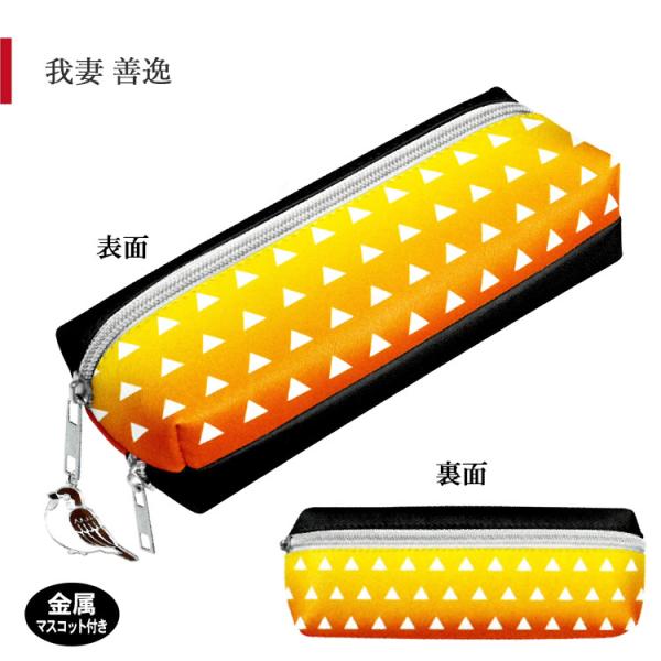 A面(表面)のファスナー引手に炭治郎、善逸、伊之助、義勇、しのぶは金属のマスコット、