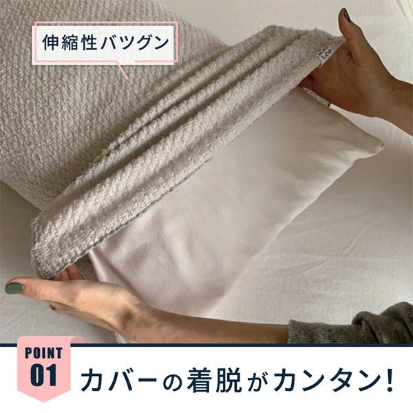チューブ状になっていて、お使いの枕やクッションにかぶせるだけで一瞬で取り付け&取り外しが可能です。