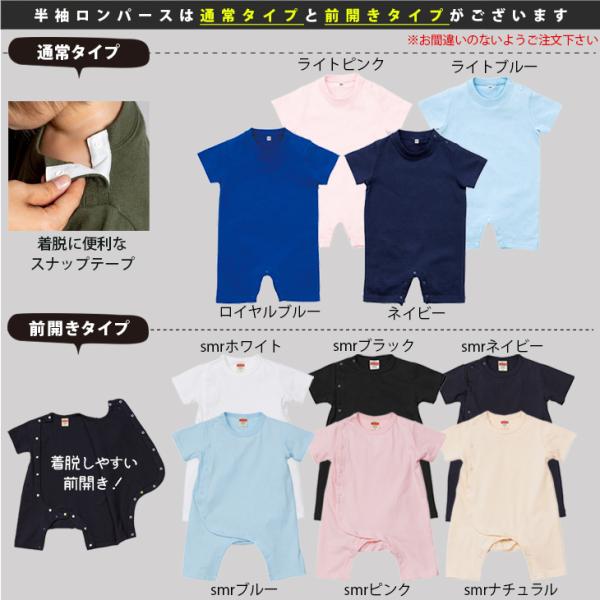 半袖 ロンパース カバーオール 前開き 着脱簡単 お着替え しやすい きがえやすい 名入れ お名前入り オリジナル 綿 コットン 100% 100パーセント ホワイト ナチュラル ブルー ピンク ライトピンク ライトブルー ロイヤルブルー ネイビー 80cm 70cm 70 80 センチ サイズ スナップボタン 肩ボタン 赤ちゃん ベビー