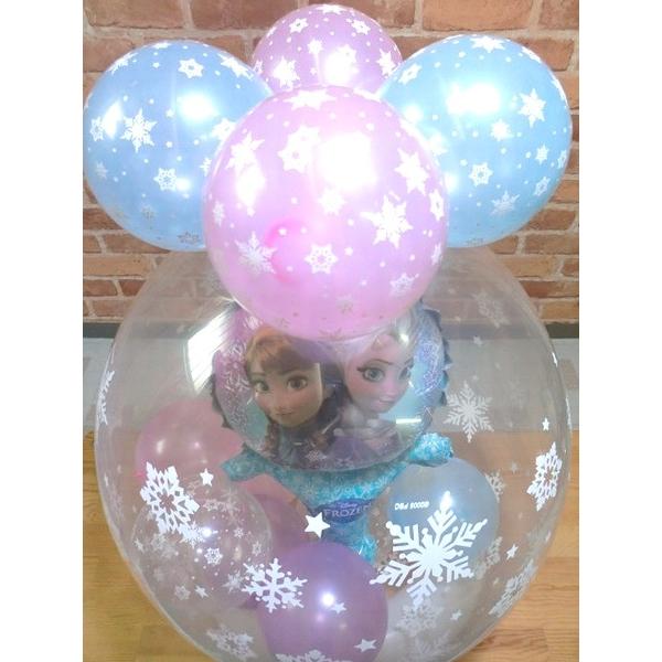 外のバルーンが萎んできて中のバルーンが窮屈になったら外のバルーンを割ってアナ雪の風船を取り出して下さい。