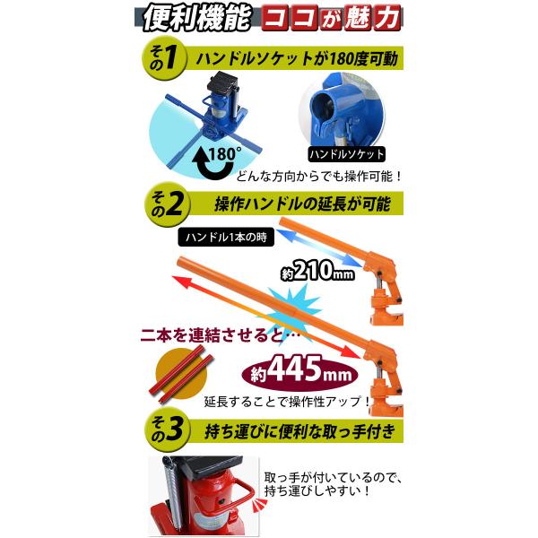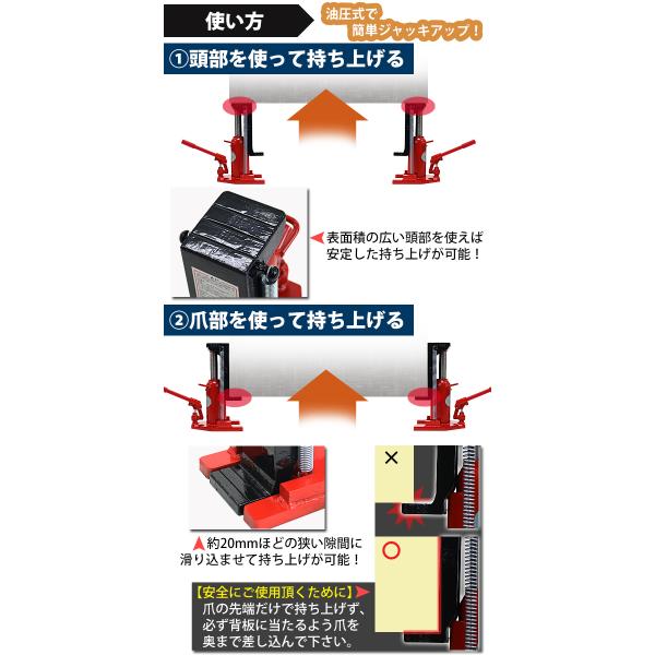 頭部と爪部の2通りの使い方の出来る便利な油圧式ジャッキ!