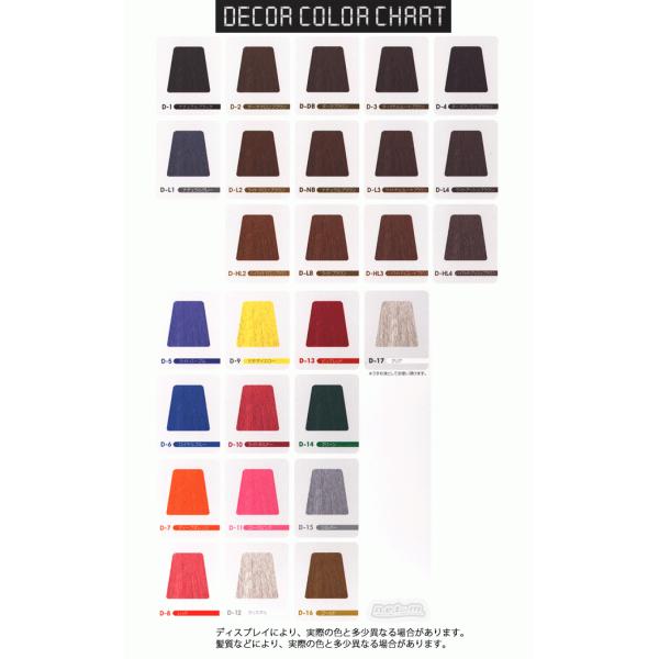 カラーは:ナチュラル系・グレー系・マロン系・ブラウン系・チョコレートブラウン系・アッシュブラウン系・ライトパープル・ロイヤルブルー・ディープオレンジ・レッド・ミモザイエロー・ライトボルドー・ローズピンク・クリスタル・ピュアレッド・グリーン・シルバー・ゴールド・クリア等