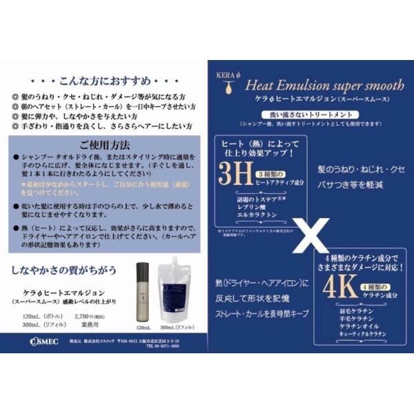 コスメック ケラファイ ヒートエマルジョン 300ml(スーパースムース)詰め替え エルカラクトン トステア 洗い流さないトリートメント 送料無料 メール便
