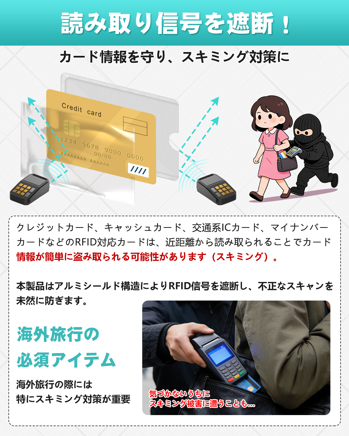 スキミング防止ケース データ保護 薄型 防水 RFIDスキミング防止