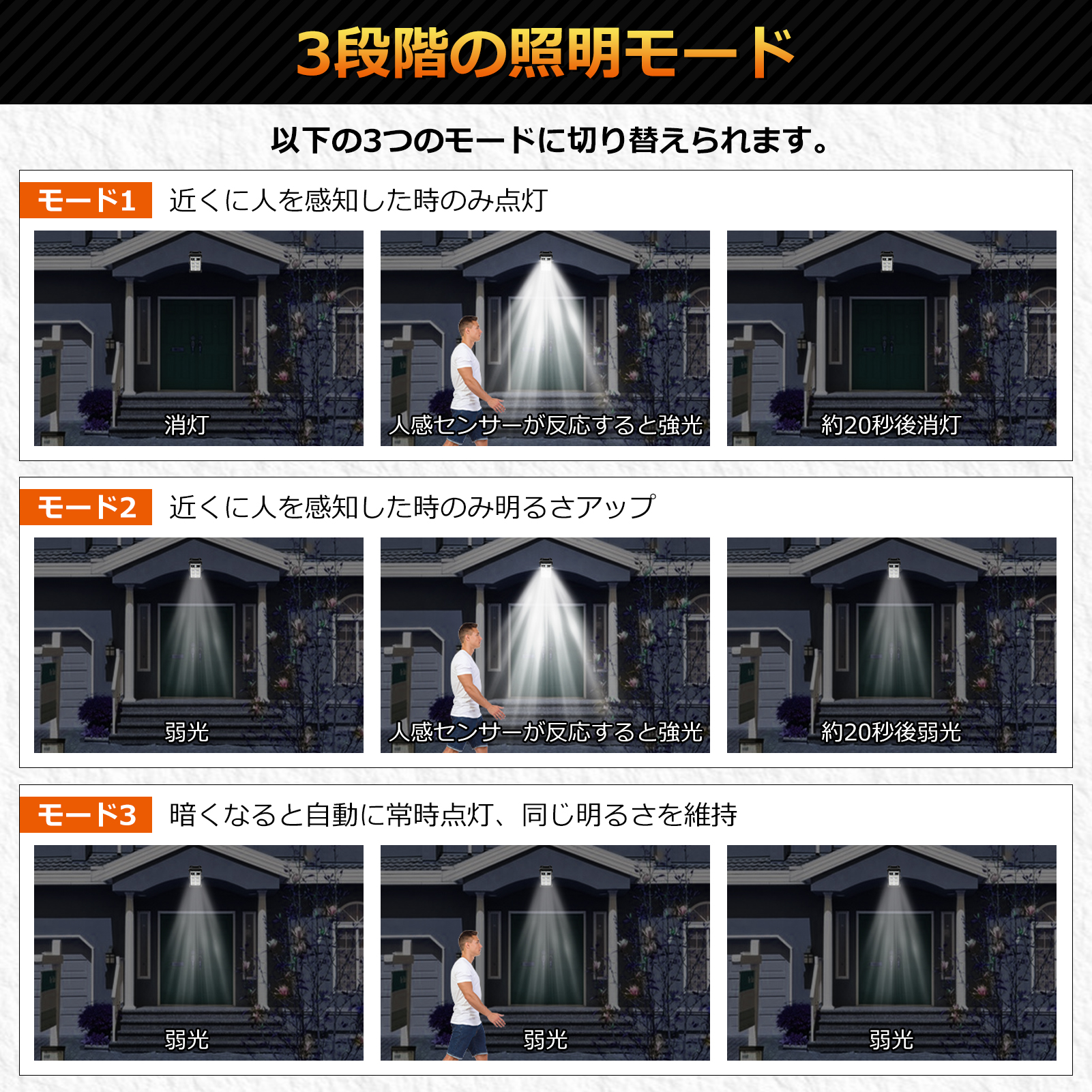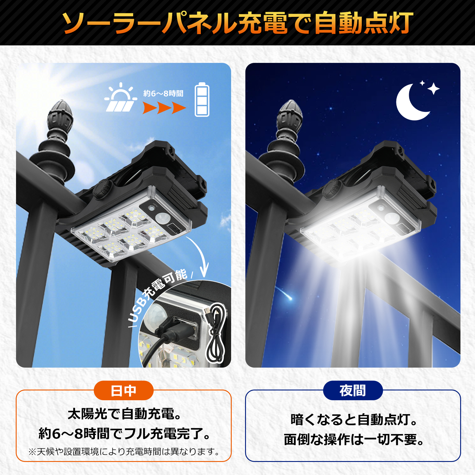太陽光充電&自動点灯、防水性能を搭載し、さまざまなシーンで活躍するセンサーライト。
