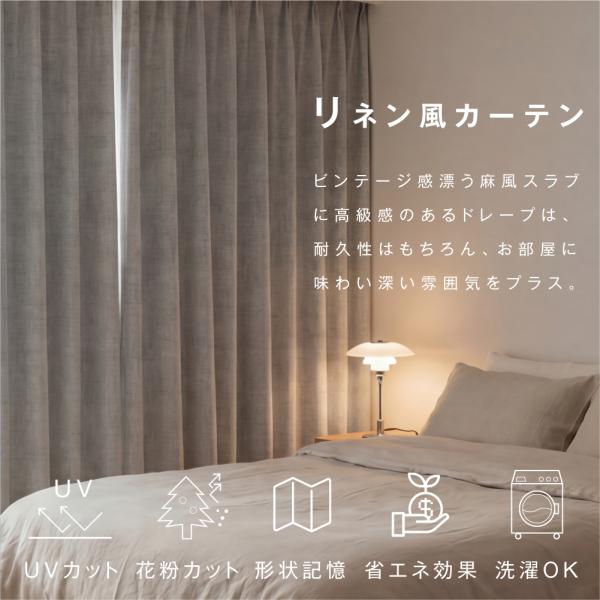 【リネン風カーテン】ビンテージ感漂う麻風スラブに高級感のあるドレープは、耐久性はもちろん、お部屋に味わい深い雰囲気をプラス。