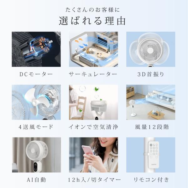 扇風機 DC リビング扇風機 12段階風量調節 リモコン 自動首振り 360°3D首振り サーキュレーター イオン除菌機能付 高さ調節 AI自動 xr-ht15爆買