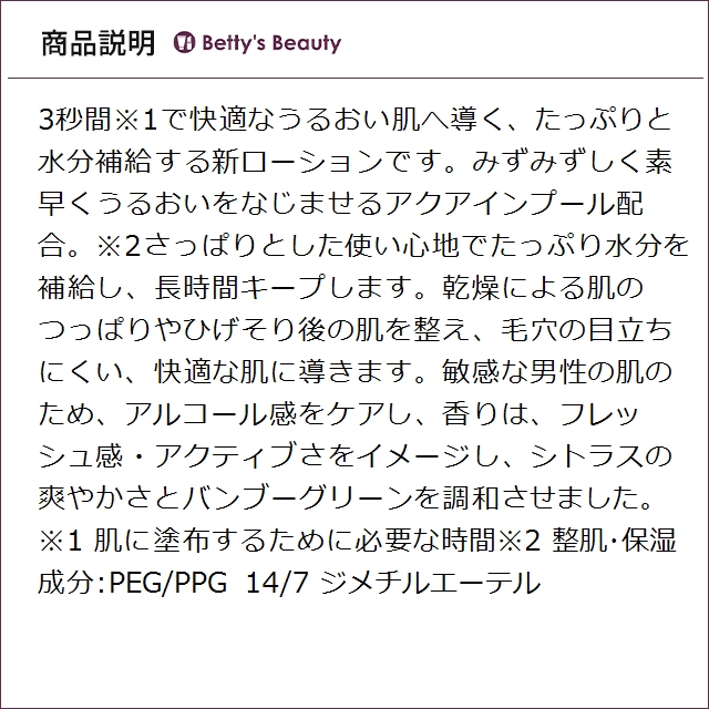 べたつかず、たっぷりと水分補給し、長時間キープする男性用