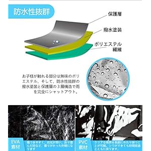 強力撥水・UVカット加工! 窓部分の耐久性・品質を格段にUP。新品気分が長続き! ・多数の通気口 設けることで、カバー内を快適な空間にできるよう考慮しています。 ・カバー裾のコード レインカバーのフィット感の調節が可能!オプションとしてご利用いただけます!