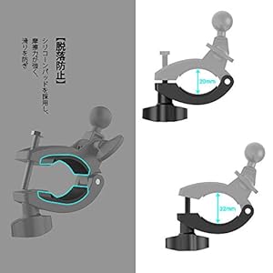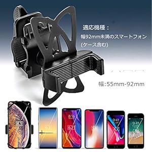 製品仕様「商品名」自転車ホルダー「素材」ABSシリカゲル「サイズ」115*129*68mm 「重量」158.8g「色」ブラック脱落防止バイクスマホホルダーはシリコーンパッドを採用し、摩擦力が強く、滑りを防ぎ。スマホに対しての二重保護両側の爪と付属のゴムバンドでスマホの隅々を二重でしっかりと固定します。360度回転可能ボールジョイントを使用して360度自由に回転可能。11箇所で俯仰角度調節ボルトを回して11箇所で好みの俯仰角度を調節可能。多機種対応&多車種対応弊社の自転車ホルダーはiPhone Xs Max/XR/Xs/X/8/7/6/6s/Plus/5/SE/5s/5c・Android等、スクリーンサイズが6.5インチ以下のスマホ、GPSナビなどに固定できます。また、ハンドル径の対応は20mm~32mmで、自転車だけではなく、クロスバイク、マウンテンバイク、ベビーカー、ランニングマシン、ショッピングカートなどの車種にも装着できます。自転車ホルダーの装着方法 1、スマホホルダーの後ろのスクリューを回して取り外し、取り外したスクリューに ボールジョイントを通す。2、ボールジョイントをスマホホルダーの後ろの凹んだ箇所に軽く押し込みます。3、スクリューを締め付けてスマホホルダーが動かないことを確認ください。