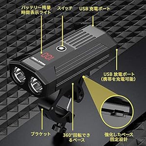 ホーム > 自転車 > 自転車ライト 5200mAh WAKYME スマホ充電でき USB充電式 バッテリー表示ディスプレイ 1200ルーメンT6高輝度 自転車ヘッドライト 5段階調光 IP65防水 懐中電灯 テールライト付
