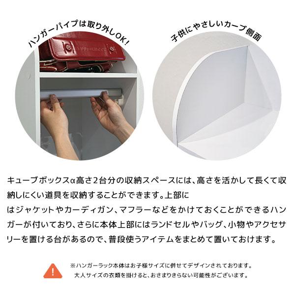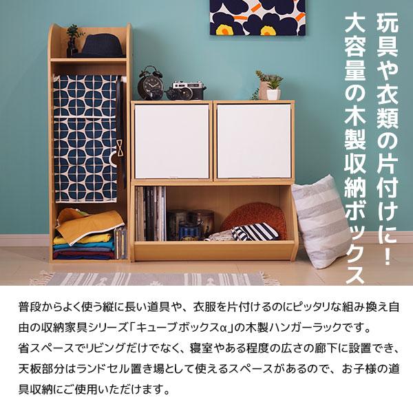 キューブボックスα ハンガー付き ランドセルラック 子供用 ハンガーラック スリム 木製 ランドセル収納 キッズ 子供部屋 収納