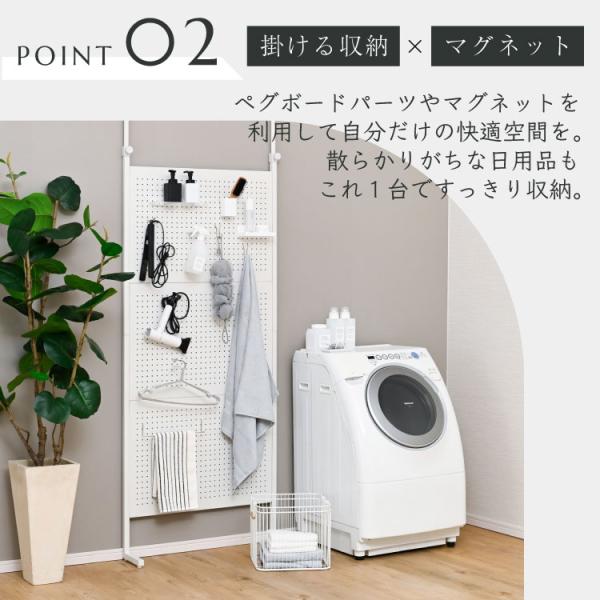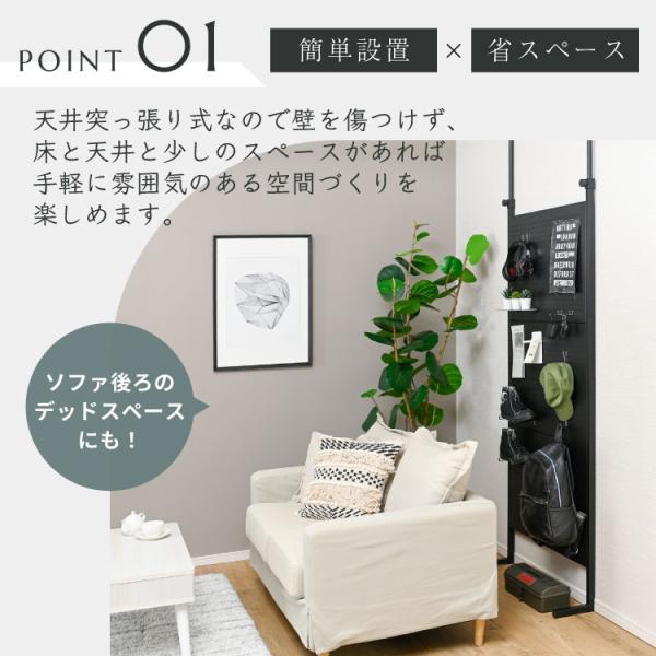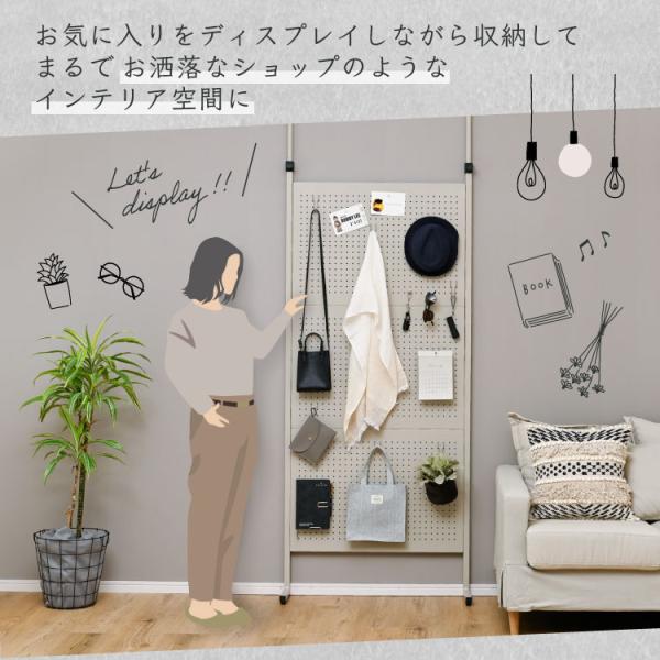 マグネットと有孔ボードアイテムが使える スチール製 突っ張りパーテーション 幅80 突っ張り棚 壁面収納 アイアン パンチングボード マグネットボード 間仕切り