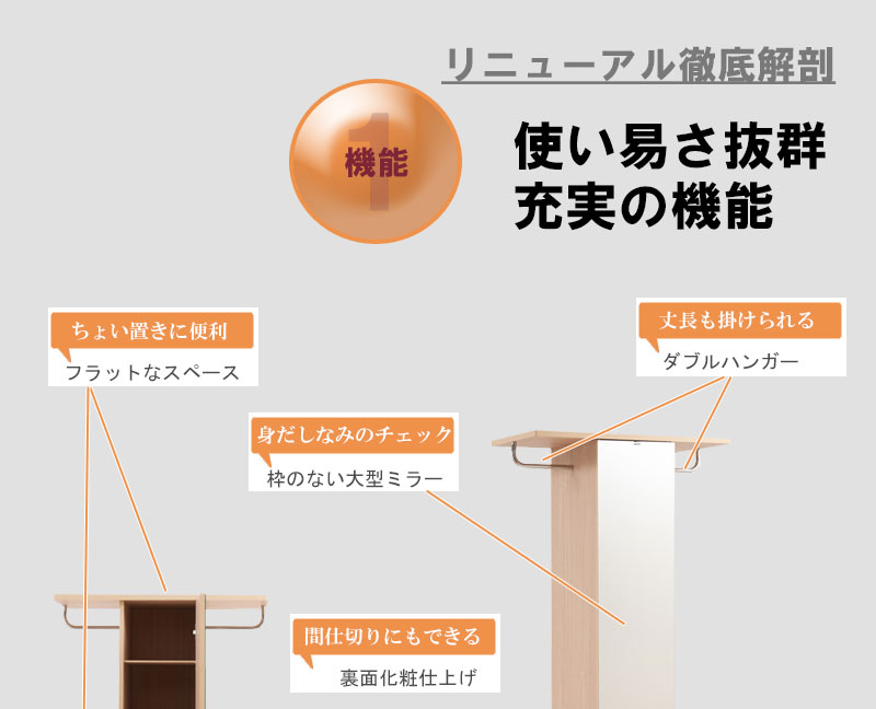 スラックスハンガー付き 姿見付き収納棚 C