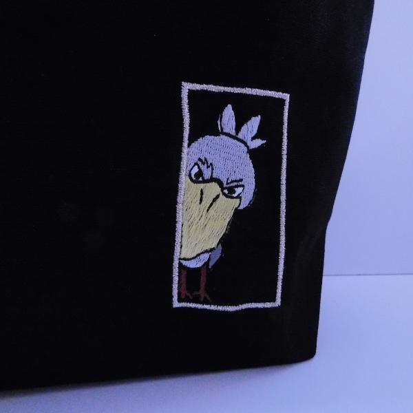 人気の「ハシビロコウ」の刺繍入りミニトートバッグになります。