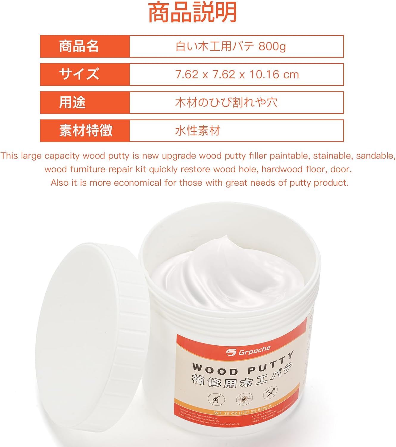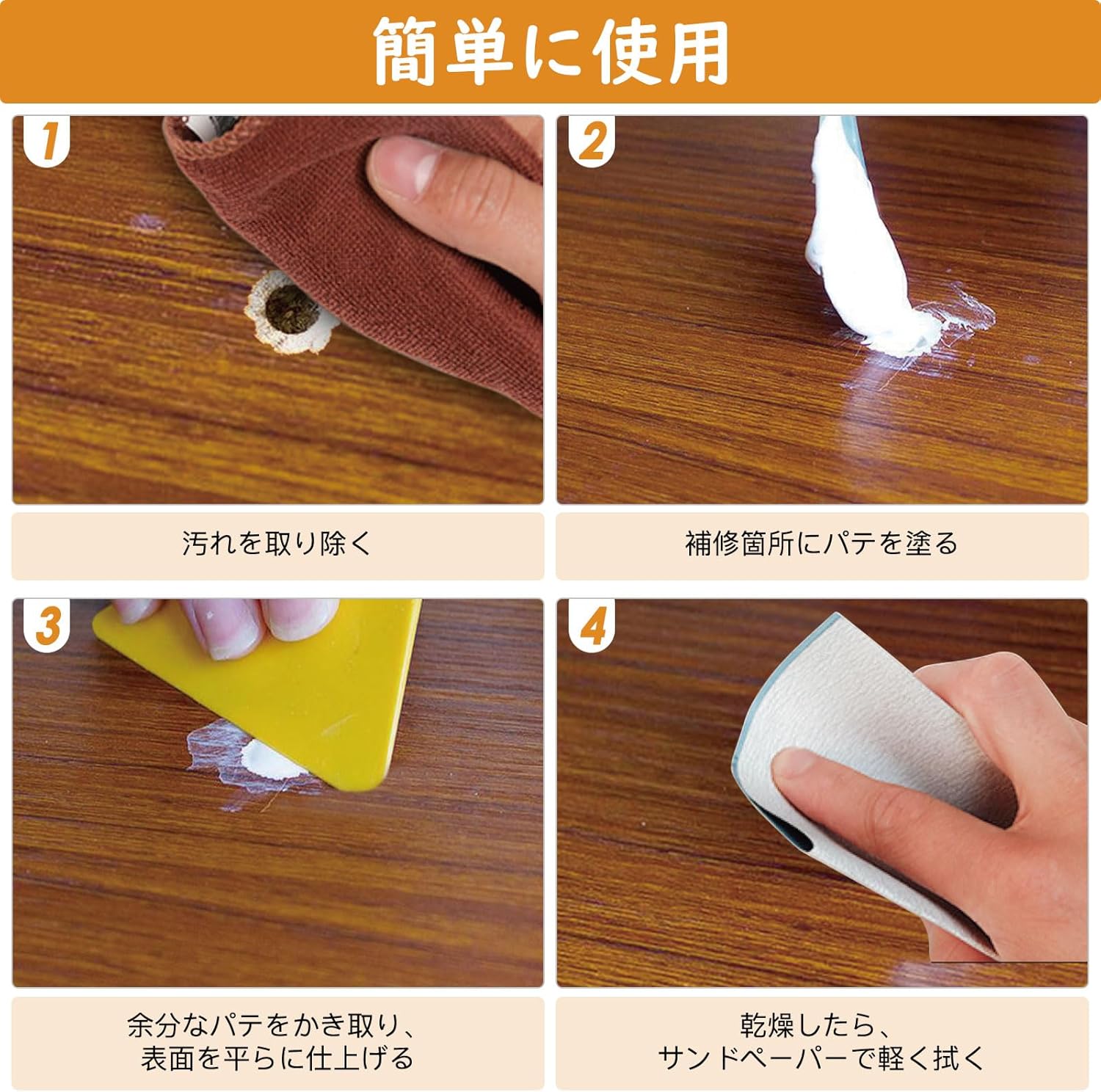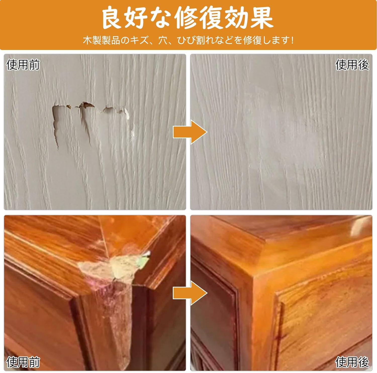 【良好な素材】使用されている素材は、安全で無害、環境に優しくて安心してご使用いただけます。 光沢がよく、色落ちしにくく、防水性があります。木工パテは繊細で耐摩耗性があり、傷んだ木材を修復しやすく。