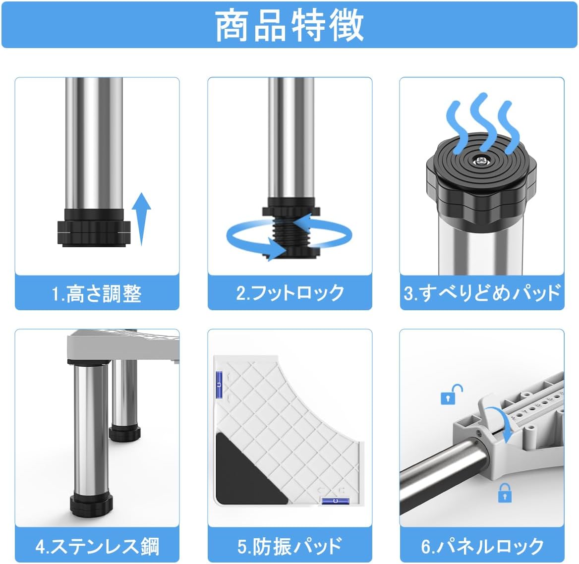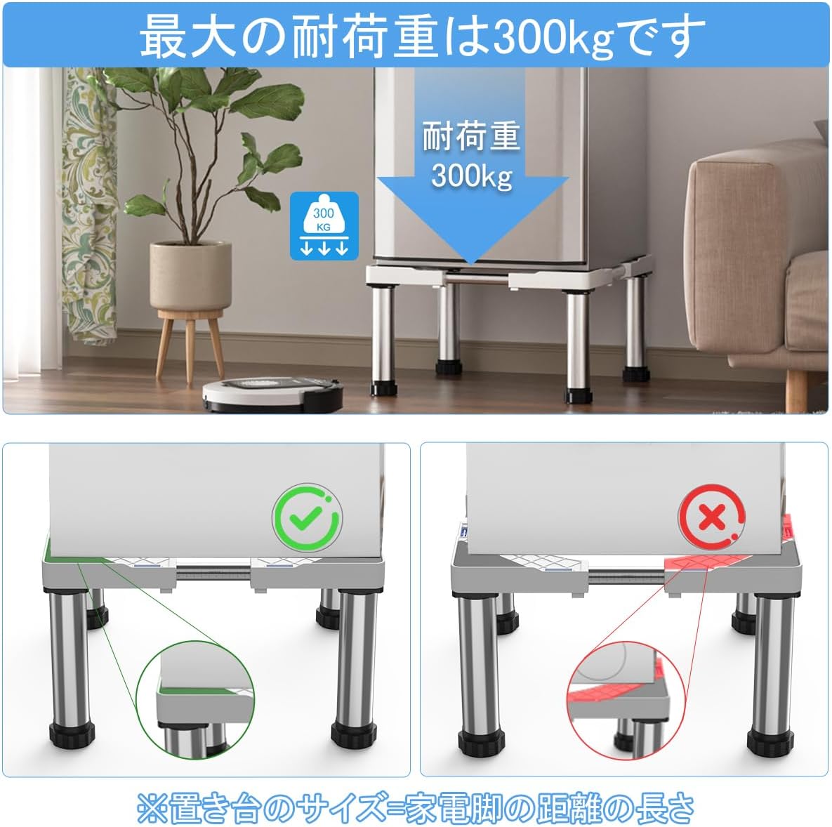 【高品質素材】高品質なステンレス鋼とABS樹脂を採用して、優れた安定性を保ち、腐食に耐えます。耐荷重を300kgまで実現します。家電との接触を有効に防止できし、排水と清掃問題を簡単に解決します。