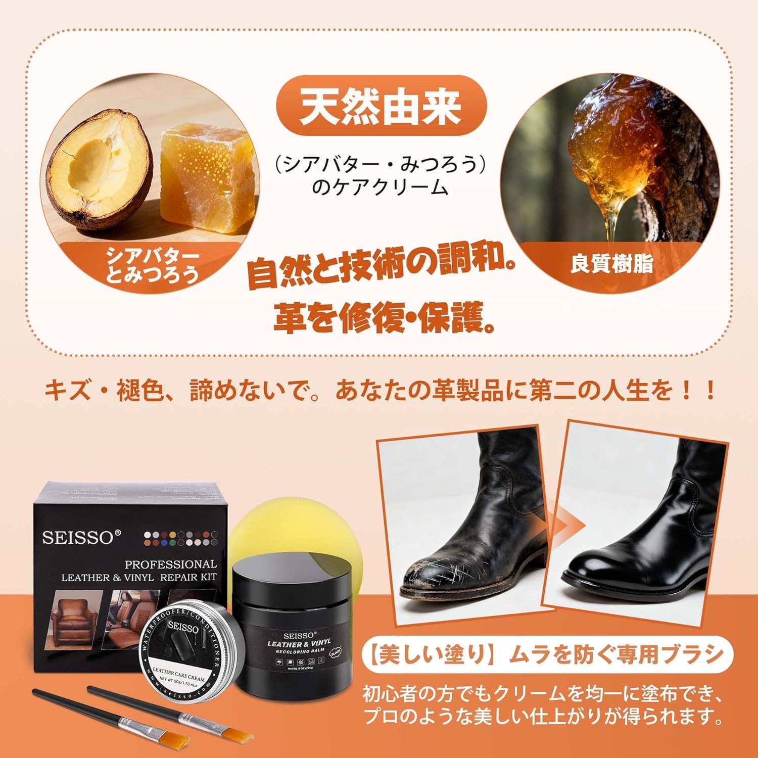 SEISSO レザー補修クリーム 200g コンディショニングクリーム 50g 皮製品キズ補修?補色 傷隠し 染め直し 栄養 保革 レザーケア 革靴 財布 バッグ 車シート手入れ