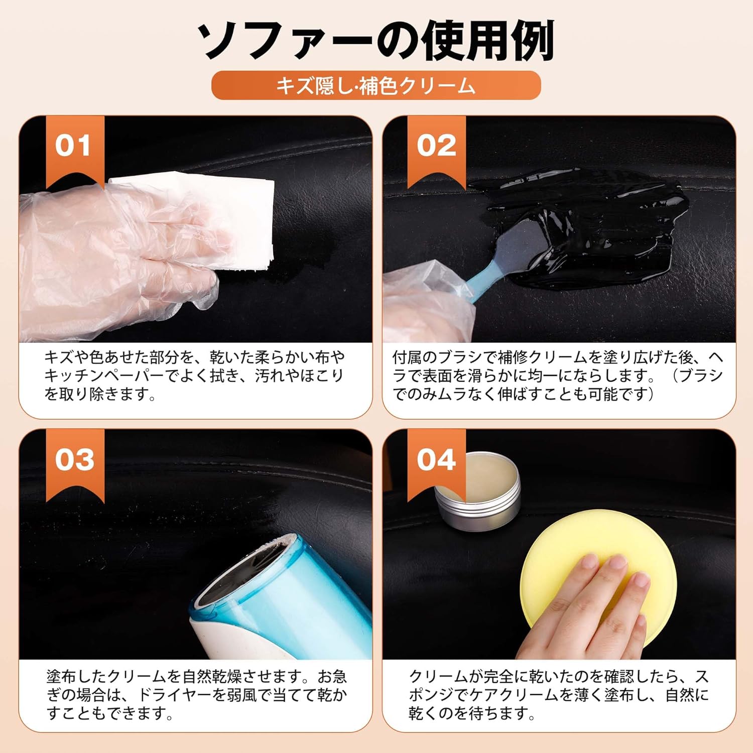 【多様な革製品に対応する、オールインワンケアセット】本品は用途が非常に幅広く、革靴 バッグ ジャケット ソファ 自動車のシート 小銭入れなど、あらゆる革製品のメンテナンスと修理にご使用いただけます。