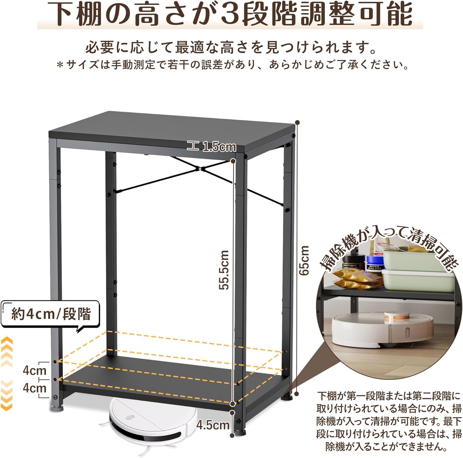 【下棚が3段階調整可能】この水槽 45cm 台の下棚の高さが3段階調節できて、用途に合わせて最適な高さを見つけられることがやすいです。