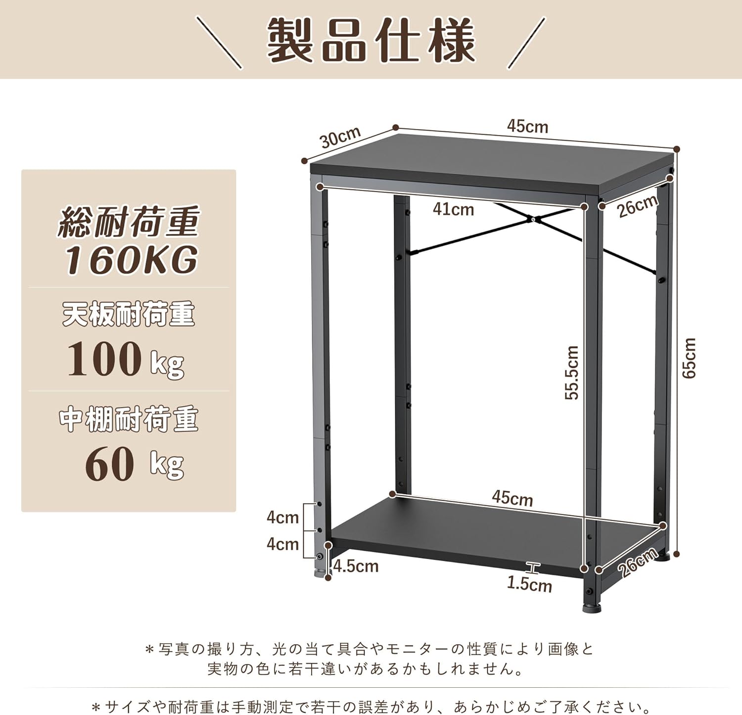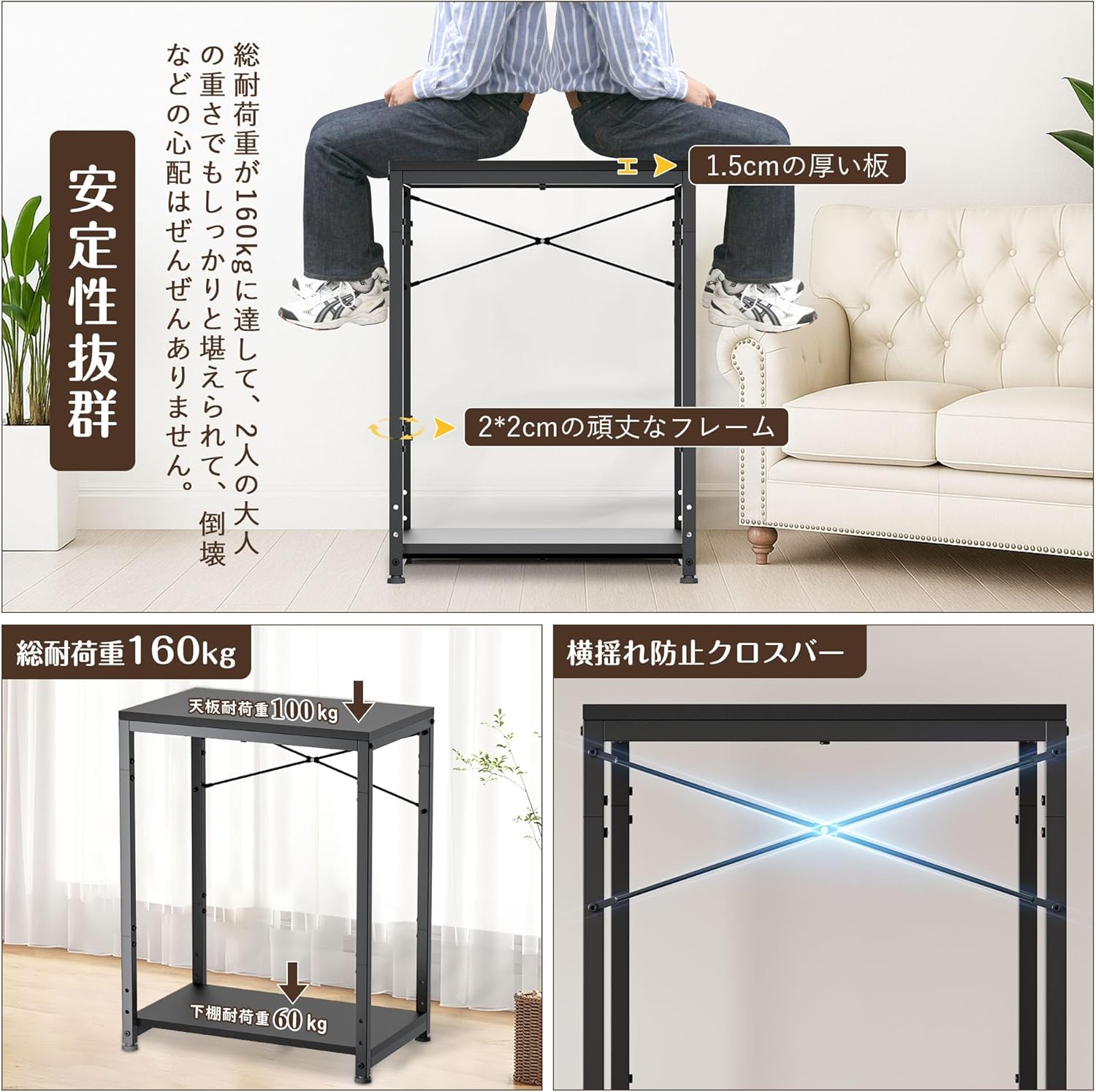 【総耐荷重160kgで支える水槽台】この水槽台の板は厚さ1.5cmの頑丈なパーティクルボード、フレームは2cm*2cmのステンレススチールを採用し、総耐荷重はなんと160kg!水槽、インクジェット複合機や事務用品のストック等の重いものを載せても揺れにくく、安定性が抜群です。