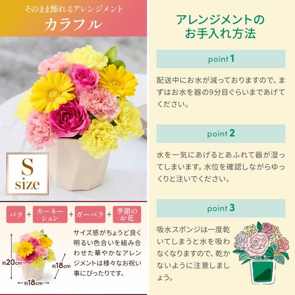 母の日 フラワーアレンジ ギフト 2026 カーネーション バラ ガーベラ Sサイズ 誕生日 プレゼント 義母 生花 お祝い 退職 卒業 送料無料
