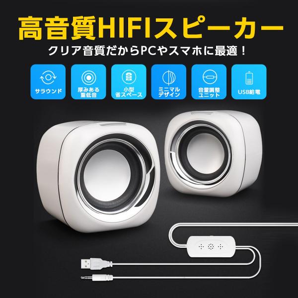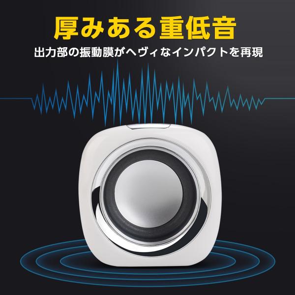 スピーカー コンパクト 小型 大音量 高音質 パソコン ウーハー内臓 3.5mミニプラグ USB 電源不要 リモートワーク ゲーミング ラウンド 黒 白