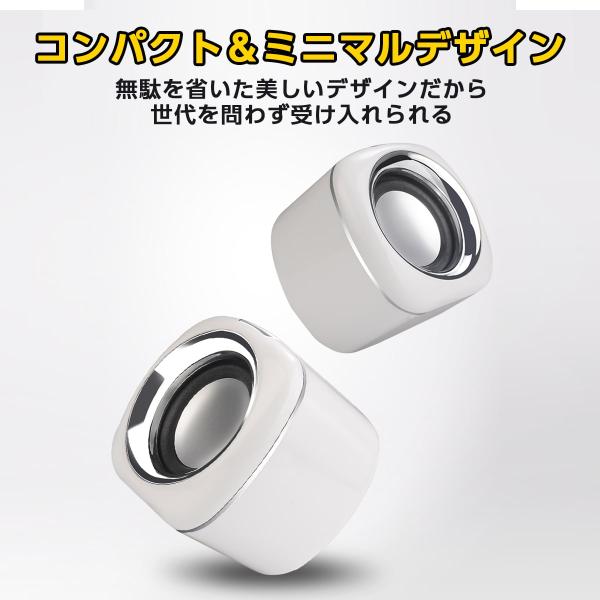 商品名 PCスピーカー コンパクト 小型 大音量 高音質 ウーハー内臓 3.5mミニプラグ USB 電源不要 リモートワーク ゲーミング ラウンド 黒 白