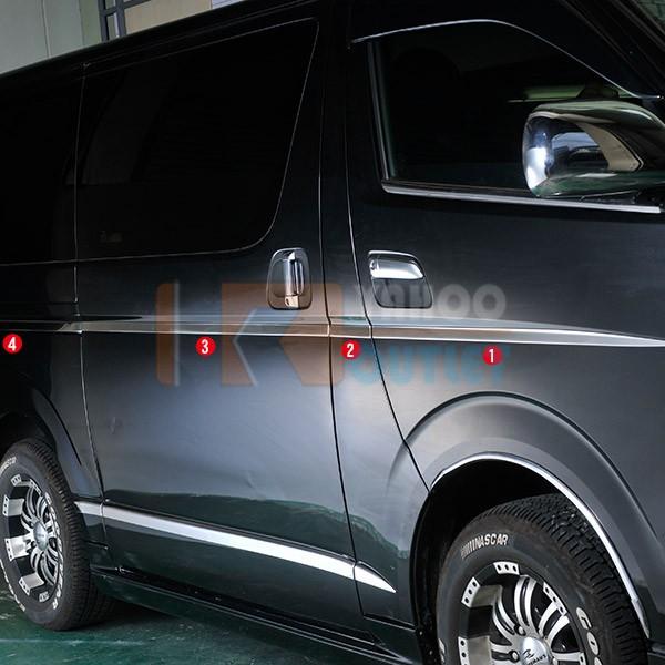 キーワード:TOYOTA HIACE 200系 1型 2型 3型 4型 5型 6型 7型 標準 ワイドボディ サイド ドア メッキ モール ガーニッシュ かー用品 エアロパーツ DX スーパーGL