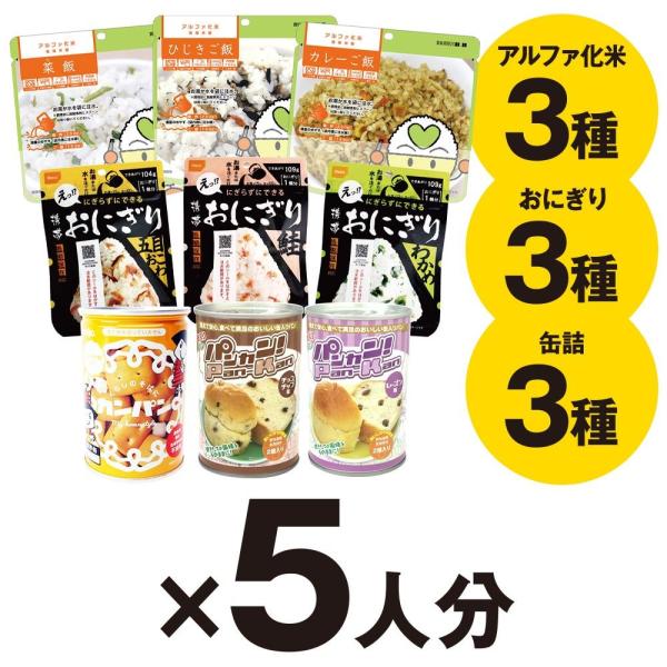 非常食 セットB 5人用 3日分(45食)(家族5人 5年保存 防災セット 防災用品 保存食 アルファ米 カンパン パン)