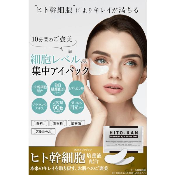 目元ケア 目元パック アイシート アイマスク アイパック アイパッチ ヒト幹細胞 ヒト幹細胞培養液 60枚入り クマ コスメ 化粧品 マスク 日本製