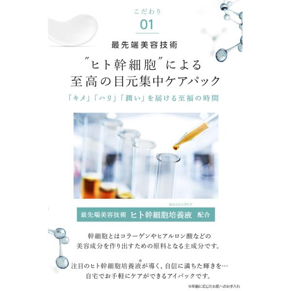 ・ 最先端美容技術により培養されたヒト幹細胞エキスを配合したアイシートマスクです。