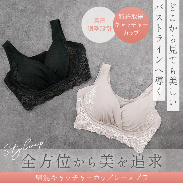 ブラジャー ノンワイヤー ブラトップ 補正 下着 綿 バストアップ 消臭 吸汗性 peace QVC ブラデリス 綿混キャッチャーカップレースブラ25 12tsv