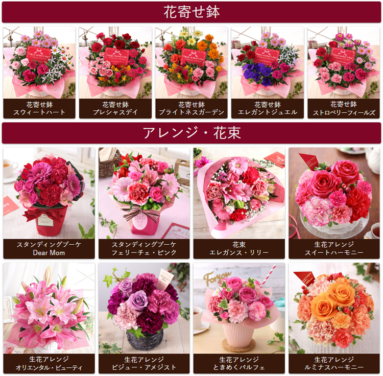 母の日特集商品は2026年5月4日(月)〜10日(日)のいずれかにお届けいたします。