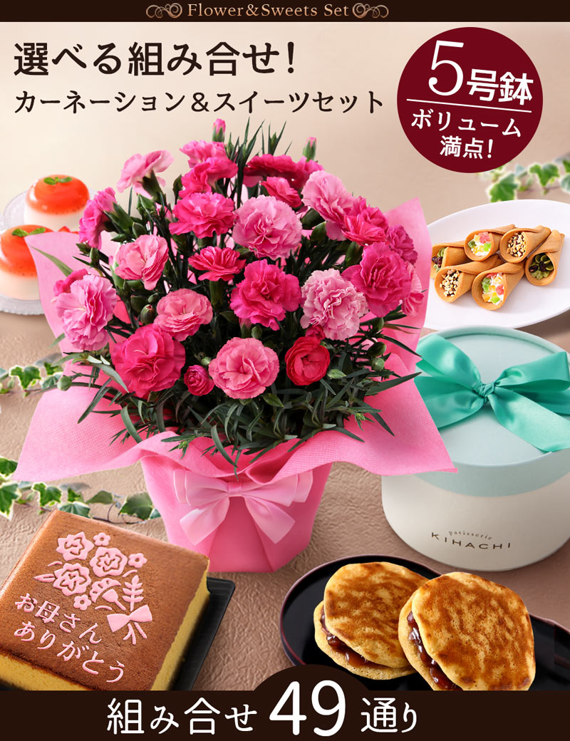 母の日 2026 ギフト プレゼント 花 鉢植え 花とスイーツ セット カーネーション 5号鉢 ピンク レッド お菓子 送料無料 早割実施中 イベントギフトD