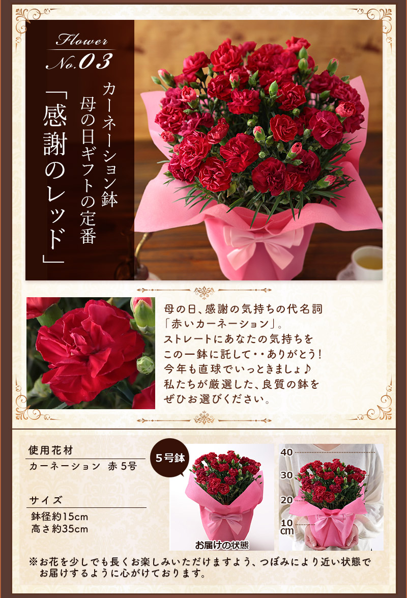 母の日特集商品は2026年5月5日(火)〜10日(日)のいずれかにお届けいたします。