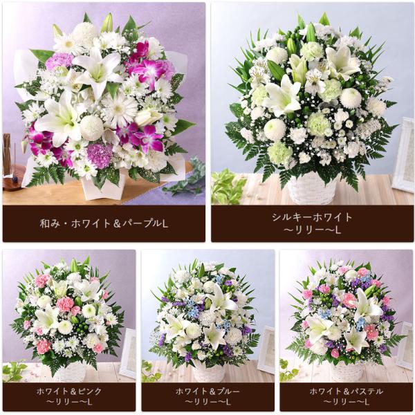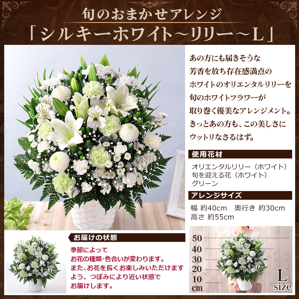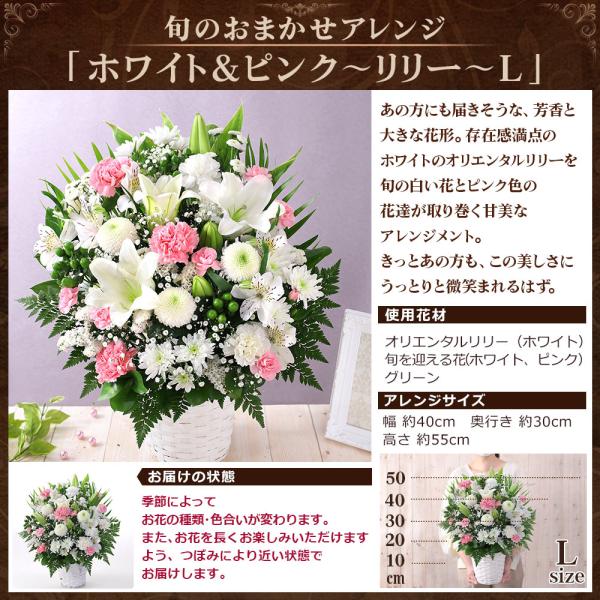 最短翌日届け 14時まで 花 お供え 旬のおまかせアレンジL お悔やみ 供花 仏花 アレンジ お花 生花 お盆 お彼岸 法要 供養 初盆 ユリ 画像配信