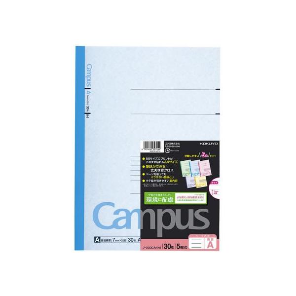 コクヨ キャンパスノート A4・カラー表紙 5色パック A罫 ノ-203CANX5
