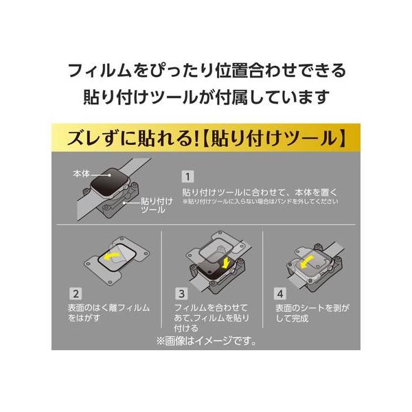 【商品説明】なめらかな指滑りを実現するリアルガラスのGorilla(R)ガラスを使用したApple Watch用画面保護ガラスフィルムです。 高精細な画質を損ねない高い透明度を実現します。 表面硬度10Hの強化ガラス採用により、保護ガラス表面の傷を防止します。 ※当社基準による10H鉛筆硬度試験での実力値です。【仕様】●貼り付け面にアクリル系粘着剤をコーティングし、接着剤や両面テープを使わずに貼り付け可能な気泡ゼロタイプです。 ●カラー:ブラック ●対応機種:Apple Watch Series 10 [42mm] ●セット内容:画面保護ガラスフィルム(Gorilla(R)ガラス、高透明仕様)×1、クリーニングクロス(乾式)×1、ホコリ取りシール×1、貼り付けツール×1 ●材質:接着面/アクリル系粘着剤、外側/ガラス