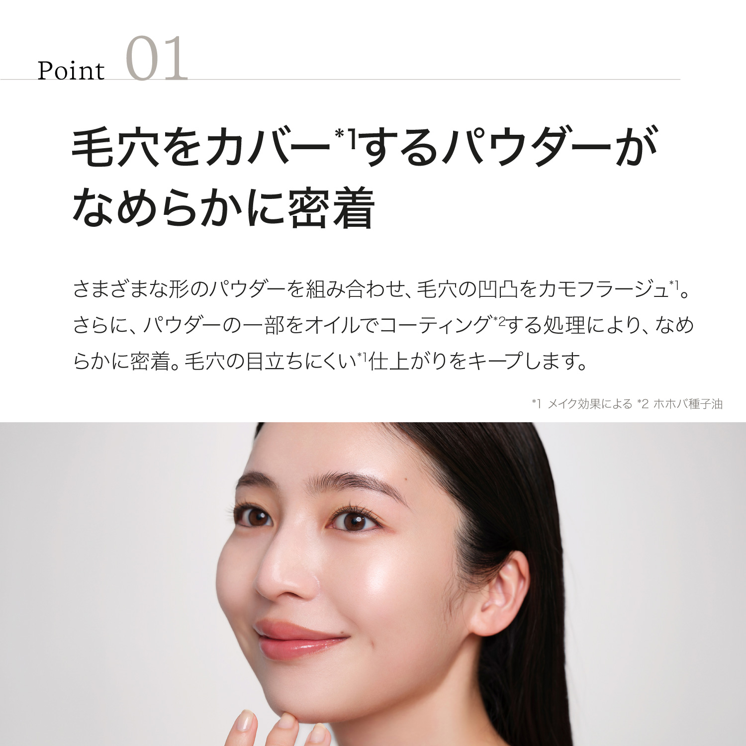 毛穴が目立たないセミマットな質感に、うるおいとなめらかさを閉じ込めて