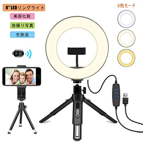 OhaYoo 909 view LEDリングライト - OhaYoo 外径8in USBライト 3色モード付き 撮影照明用ライト 卓上ライト Bluetoothリモコン 高輝度LED スマホスタンド付き 10段階調光 美容化粧/Yo