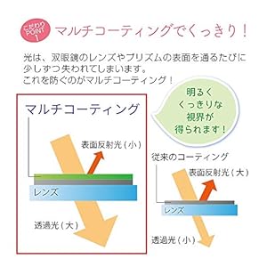 コンパクトボディ携帯性に優れた対物レンズ口径21mmのコンパクトボディで、アウトドアでの自然観察や屋内の観劇など、さまざまな場面で気軽に持ち歩いて使用できる。 明るくクリアな視野レンズに施したマルチコートと高屈折率ガラスBaK4を使用したプリズムにより、光の透過率と反射率を向上しており、明るい視野が得られる。また、非球面レンズを採用し、視野の周辺部まで歪みの少ないクリアな像を実現している。 ラバーコートを採用ボディ外装にはラバーコートを施しており、握りやすさと耐衝撃性を向上させている。 合わせやすい眼幅調整 使う人によって異なる眼幅を簡単な操作でスムーズに調整することができる、当社双眼鏡独自の眼幅調整方式(連動2軸式)を採用している。使用/収納がワンタッチでおこなえる、スライド式接眼目当て。 センタークリック(視度ゼロm-1位置)機構が付いて使いやすい視度調整機能。 より近くの目標物を見ることができる、最短ピント距離2.8m。