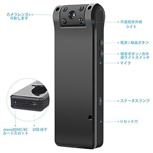 Youtube操作ビデオ https://youtu.be/_zntMQtod2c 小型カメラ超軽量41gクリップ型ビデオカメラスパイカメラとy 1920X1080P 最大128G 録画5時間以上 録音10時間以上 1時間録画は約5GBです 16GB メモリは約2~3時間録画ができます。 32GB メモリは約5~6時間録画ができます。 64GB メモリは約10~12時間録画ができます。 128GB メモリは約20~24時間録画ができます。 ナイトビジョン機能 動き検出 カメラレンズは180度回転 ループ録画 昼夜鮮明にはっきり記録できます。 電源操作 電源 ON : 電源/録画ボタンを長押しします。青色点灯を続けます。 (待機状態) 電源 OFF : 電源/録画ボタンを長押しします。数秒後ランプが消灯します。 動画撮影開始: 待機状態で電源/録画ボタンを短く押します。青ランプが3回点滅し、その後消灯します。 (録画開始) 動画撮影停止: 録画状態で電源/録画ボタンを短く押します。保存して録画停止青ランプが点灯します。 (待機状態) 録音開始: 待機状態で「録音ボタン」を短く押します。緑ランプが3回点滅し、その後消灯します。 (録音開始) 録音停止: 録音状態で「録音ボタン」を短く押します。保存して録音停止→青ランプが点灯します。 (待機状態) 不具合時に本体横のリセット穴をクリップ等で押してください。 microSDHC/XCカードを指定しないので、普通のmicroSDHC/XCカードを使えます。 操作仕方以下です。 microSDHC/XCカード中にファイルがあります。 SETTINGSの中に1.1.0.1の数字があり 0はNO 1はOFF 第一の1は解像度です。0は720P 1は1080P 変更しましたら保存してください。 第二の1或い0は循環録画 0はNO 1はOFF 変更しましたら保存してください。 第三の1或い0は 動体検知 0はNO 1はOFF 変更しましたら保存してください。 第四の1或い0は時間の表示設定 0はNO 1はOFF 変更しましたら保存してください。 ご不明な点がございましたら、いつでもご連絡お願い申し上げます。