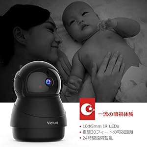 スマートクルーズ&アラーム:水平355度垂直100度の範囲でレンズが回ることができ、リモートコントロールできます。自動クルーズ機能により、死角なしでパノラマのカバレッジを作成します。撮影範囲内で動きを監視し、携帯電話に通知を送信してお宅の安全を保障します。簡単インストール:IPC 360をダウンロードすればインストールできる。アマゾン制限の問題で、私たちはアフターメールで機器のPCを送信できません。必要なら、説明書メールアドレスにご連絡ください。(ipc.support@govicture.com)この点はご了承ください。ビデオ暗号化:この監視カメラは、ユニークな暗号化技術を採用し、マイクロSDカードに動画を保存します。SDカードのビデオファイルはお客様自分だけアクセスすることができますので、カメラやSDカードが盗まれてしまった場合も、ビデオが他人にカードリーダーでコピーされるご心配はございません。仕様:サイズ:93 * 114.5 mmアプリケーション:iOS/AndroidTFカード(含まれていない):8-64G(32 GBのSDカードがおすすめ)PTZ:パン:355°チルト:100°ワイド - エンジェル:90°解像度:200万画素、1920×1080(1080P) 赤外線:850nm 10PCS、最大30フィートの範囲暗視撮影:IR-CUTフィルターが自動的に切り替わります(光の変化に応じて自動的に切り替える)WiFi LAN周波数:2.4GHz、WPA2暗号化、IEEE802.11b / g / n機能:アンチノイズ、双方向音声、暗視撮影、動体検知パッケージ:1.Victure IPカメラ* 12.パンチルトデバイス* 13.ネジ* 24.電源ケーブル* 15.電源プラグ* 16.ユーザーのマニュアル(多国語版)* 1(日本語版は87ページで)保証:Victure IPカメラは一年の保証を提供することを約束します。専門的なカスタマーサービスチームを提供し、もしご質問があれば、お気軽にipc.support@govicture.comまで電子メールを送ってください。満足できるまで問題を解決するために最善を尽くします。アマゾン制限の問題で、私たちはアフターメールで機器のPCを送信できません。必要なら、説明書メールアドレスにご連絡ください。(ipc.support@govicture.com)この点はご了承ください。注意事項:1.このカメラはパソコンでAppleシステムとWindowsシステムに適用できません。2.周波数帯が2.4GHz(802.11b / g / n)のWiFiルーターが必要です。5GHzWiFiに対応しておりません。3.古い「WEP」暗号化方式は対応しておりません。必ず「WPA2」暗号化方式をご利用ください。4.できれば、ルーターに近い場所で接続をお願いします(10メートル以内)。公共のWiFi環境とWiFiアンプとモバイルWi-Fiをサポートしておりません。5.32GマイクロSDカードはC10でカメラに最適です。6.録画する前に、まずアプリでSDカードをFAT32形式にフォーマットしてください。7.マイクロSDカードのファイルは、カードアダプタ経由でコンピュータにコピーすることはできませんが、アプリを利用してビデオを携帯電話にコピーすることができます。8.WiFiパスワードは40文字以内で、特殊文字は使用できません。YouTube:具体的な操作動画が必要な場合はYouTubeでVicture IPCを検索。