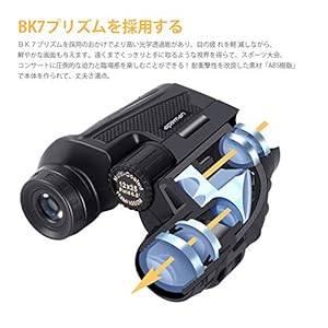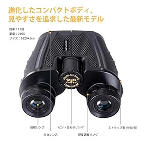 ☆「こ れ だ」 大好きなアイドル、大切な一瞬間を綺麗に拡大したい時に、このAPEMANの双眼鏡を使ってみない?オシャレなデザイン、かっこいいな真っ黒、男性にも女性にもピッタリ合い、専用ネックストラップがあり、アイカップも付き、メガネを掛けてる方でもお気軽くエンジョイできる。両眼分けてピント調整するから、覗い時間は長くても、疲れにくく、きつくない。コスパ抜群、コンサート用に、プレゼントにしても大歓迎、総合的に考えたらこれだ!☆ 「基 本 材 料」「ABS樹脂」とはアクリロニトリル(A)、ブタジエン(B)とスチレン(S)よりなる合成樹脂で、ポリアクリロニトリルの耐熱性、剛直性、耐油性、耐候性と、ポリブタジエンの耐衝撃性、ポリスチレンの光沢のよさ、電気特性、加工性とを兼ね備えた優れた性質をもっている。そして、BAK7型ガラスは精細で、密度の大きく、屈折率の大きめの光学ガラスでありその自身の特性により効果的にガラス内の光線を発散させ、ガラス内部を通る光線の損失を減らし、プリズム作りに向く材質です。☆ 「いろいろな場面で活躍」多層膜コーティングによって、レンズの表面反射が大幅に減り、透過率が増えたために、実感が強!または画質の歪みを最大限のコントロールするため、高屈折率レンズを採用、周辺部まで均一で美しい広視界を確保できます。長い時間覗いても酔えない鮮明な視界が実現できるからコンサートやライブ会場、スポーツ観戦、オペラ・バレエ観劇、お子さんやお孫さんのピアノの発表会、運動会、アウトドア、フェスや野外コンサート、ドライブ、旅行、美術館など用途を選ばずいろいろな場面で活躍できる。☆ 「軽量で堅牢なデザイン」市販の双眼鏡と比べると、落下試験をクリアしており、左右の像にズレがないよう厳密に組立、軽くて10倍以上の倍率、酔えない鮮明な視界、タイヤ止めとして使えるまでの丈夫さ、欧米で大人気にあるアウトドアブランド【APEMAN】、そしてお客様のため、24時間にサポートサビースで用意していますので、ショッピングにご安心くださいませ。☆「 簡 単 に 操 作 」 1.まずは両目で覗いて本体を開閉しながら視野を一つの円にする。2.一つの円になったら右目を閉じで覗き、左目のピントに合わせるため、中央のリングを回す。3.最後は右目を開いて、右側のリングを回すことでピント合わせ完成!一度両目のピントが完成だと、あとは中央のリングを回すだけで両眼のピント調整ができる。【 仕 様 】倍率:12倍対物レンズ有効径:25mmレンズコート:マルチコート1000m先の視野:114m実視界:6.5°ひとみ径:2.5mmアイレリーフ:14.2mm明るさ:4.33サイズ(W×D×H):115×50×110mm重量:230g付属品:ケース、ストラップ、拭き取り布【メーカー1年保証】商品到着日から1年間有効。新品交換の対応もさせていただきます。「ご注意」APEMAN双眼鏡製品の正規販売店は「GoldRing JP」のみ店舗です。その以外の出品者から購入する場合、APEMAN正規品として判定できないことをご了承ください。