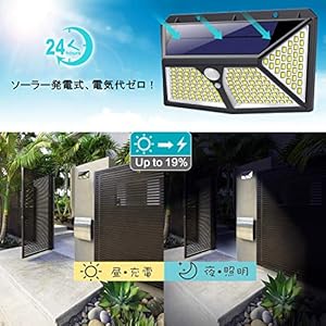 ZEEFO 893 view 【最新版208LED】ZEEFO センサーライト ソーラーライト 4面発光 屋外照明 人感センサー 3つ点灯モード 防水 防犯ライト 両面テープ付き 自動点灯 屋外照明 庭 玄関 ガーデンライト 駐車