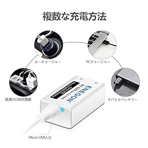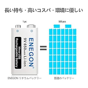 ホーム > カメラ > ENEGON 9V 充電式 電池(650mAh、2パック)+2in1 Micro USBケーブル、充電器不要、マイク、煙探知器、電子玩具、トランシーバーなどのデバイス対応 充電器不要